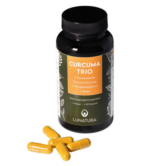 Lunatura Curcuma Trio | Kurkuma Kapseln mit Curcumin | Hochdosiert & Fermentiert | Angereichert mit Selen & Phosphatidylserin | 60 vegane Kapseln