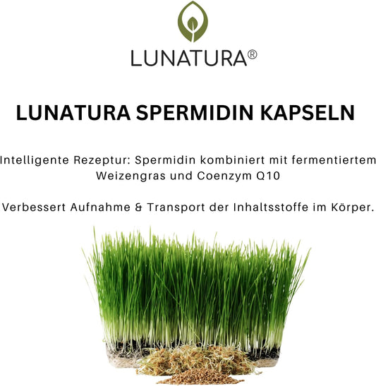 Lunatura Spermidin mit Q10 und fermentiertem Weizengras – 60 Kapseln