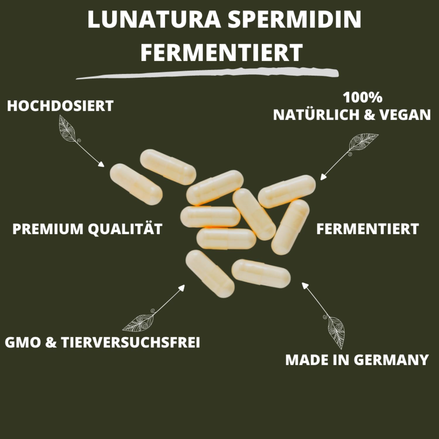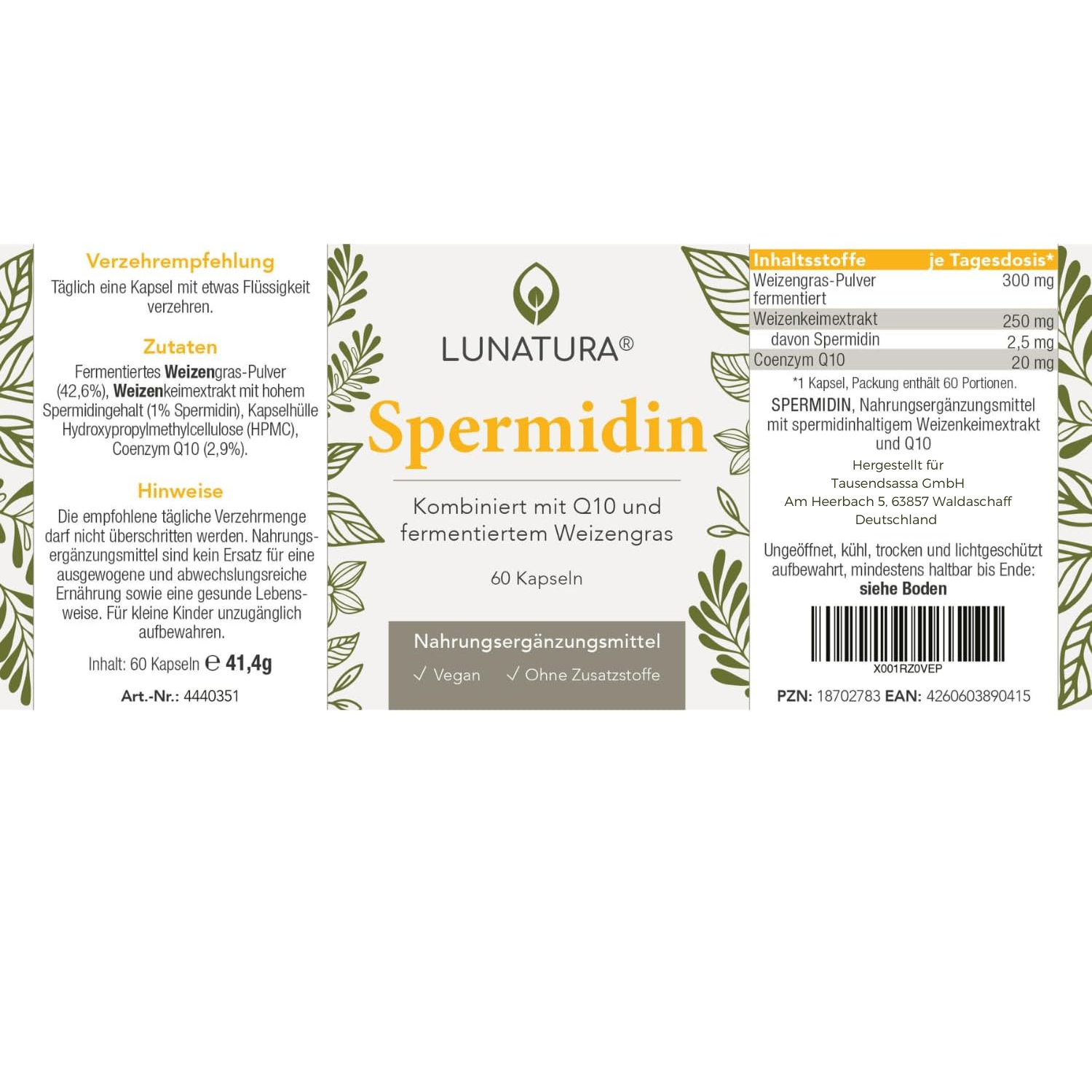Lunatura Spermidin mit Q10 und fermentiertem Weizengras – 60 Kapseln